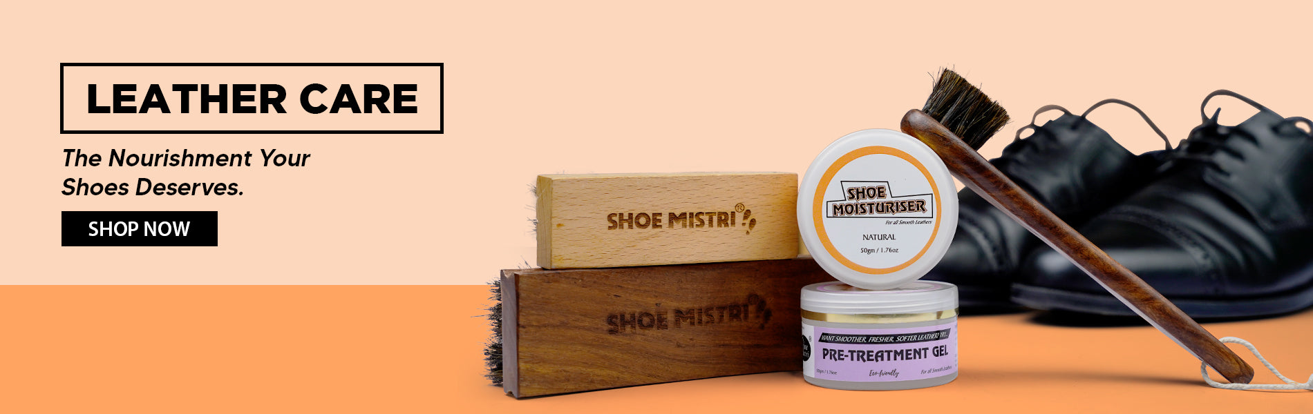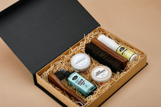 Shoe Mistri Leather Care Kit Drawer | Pack Of Instant Shoe Shiner, Moisturiser, Pre-treatment Gel, Deodorant, Horse Hair Curved Brush & Soft Applicator Brush
