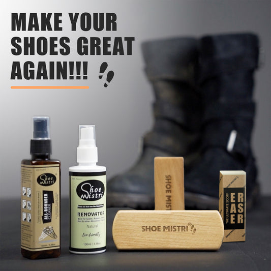 Shoe Mistri Premium Suede Cleaning Kit | Pack of Suede-Nubuck Cleaner & Renovator, Soft Brush, Crepe Rubber Suede Brush, and with Suede Eraser | Suitable for Cleaning Suede & Nubuck Shoes