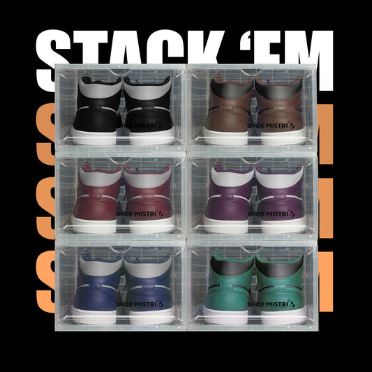 Shoe Mistri Shoe Crates for Sneakers | Plastic Stackable Shoe Box with Clear Door | Multipurpose Foldable Shoe Organizer