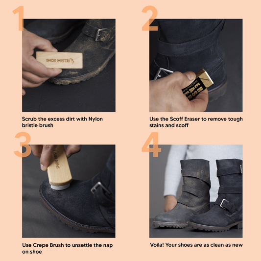 Shoe Mistri Premium Suede Essential Care Kit | Pack Of Crepe Rubber Brush, and Nylon Brush with Suede Eraser Set| Suitable for Cleaning Suede & Nubuck Boots