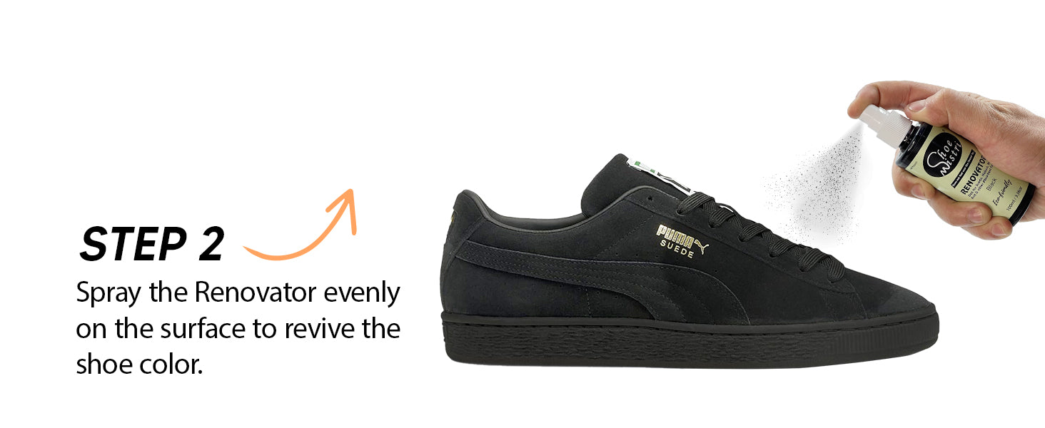 Shoe Mistri's Renovator (Black) is convenient, Non-Toxic and Eco-Friendly water based spray. It removes stains and restores the original colour of the shoes. It is suitable for various shades of Olive Green colour suedes, nubucks, canvas and other absorbent fabrics. Generally, it requires 7-9 sprays on one shoe. However, the no. of sprays varies depending on the porousness of the fabric.