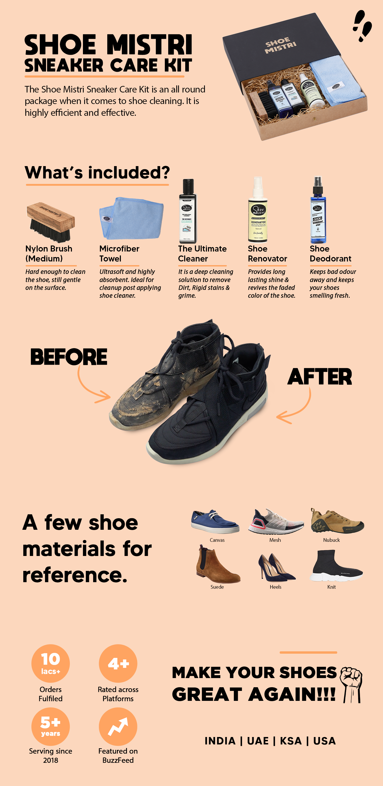 Shoe Mistri Sneaker Care Kit | Pack Of Ultimate Shoe Cleaner, Renovator, Shoe Deodorant, and Sneaker Brush with Microfiber Towel