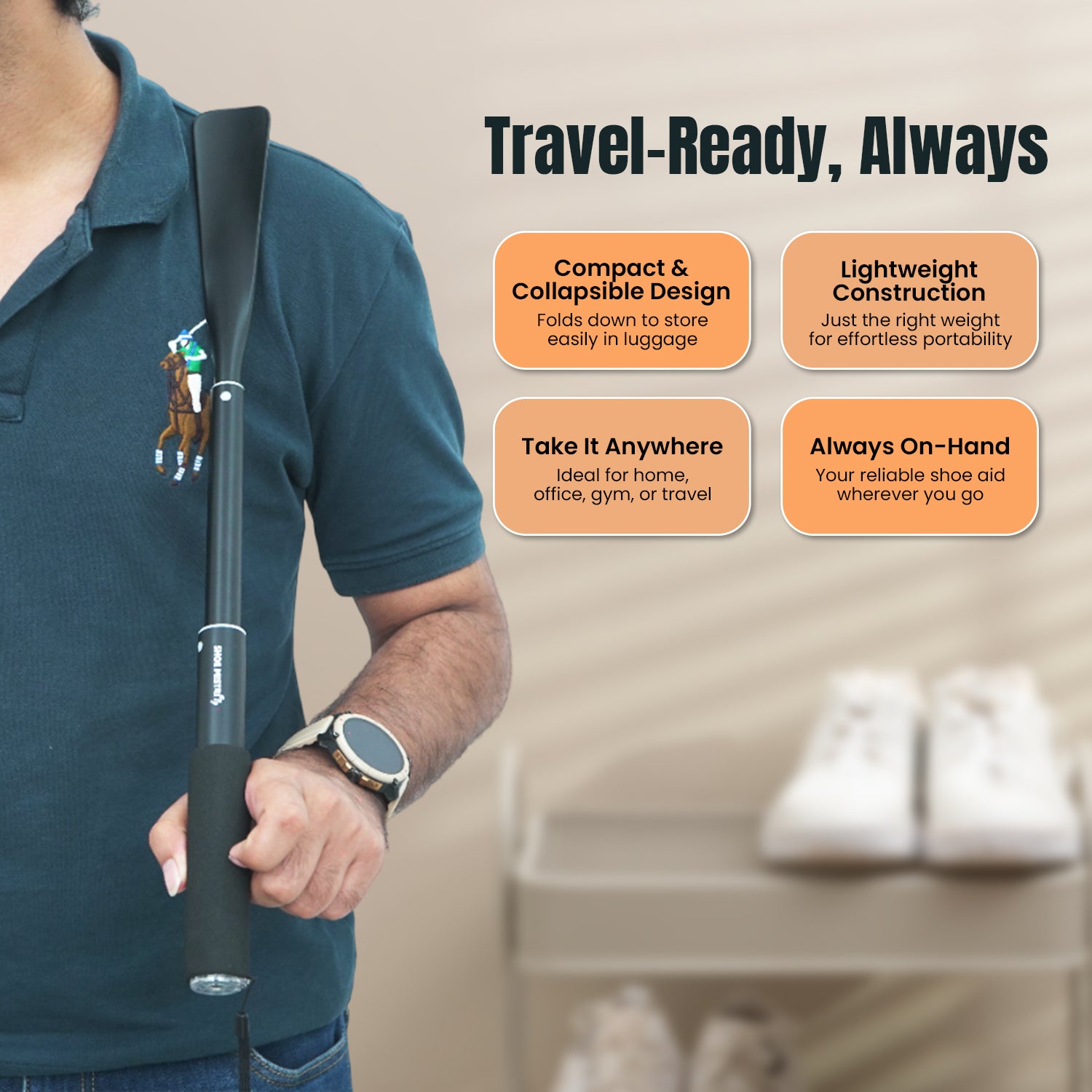 - The fine metal shoe horn helps you to put on shoes in standing position when you don’t want to bend and crease your finely ironed shirt before going to office or a party.